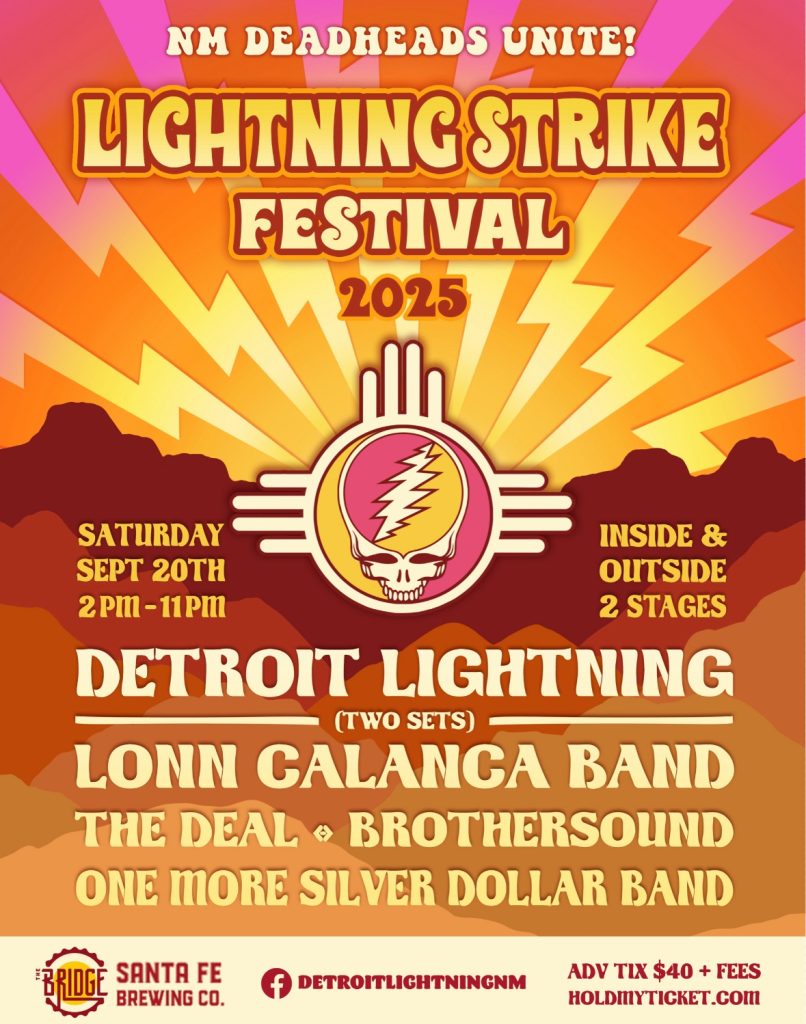 NM Deadheads Unite! Lightning Strike Festival 2025 Saturday Sept 20th 2pm-11pm Inside & Outside Stages at The Bridge at Santa Fe Brewing Co. Detroit Lightning (2 Sets) Lonn Calanca Band...